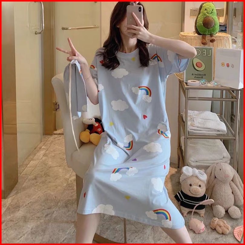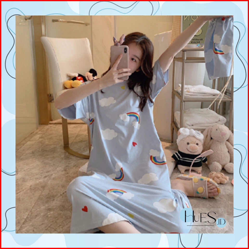 Hues.id Pakaian Wanita Baju Tidur Wanita Import Daster Motif Longgar Korea Fit To Xl 4014