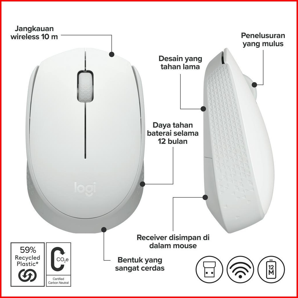 Logitech M171 Mouse Wireless Untuk Windows Mac Chromeos - Off White