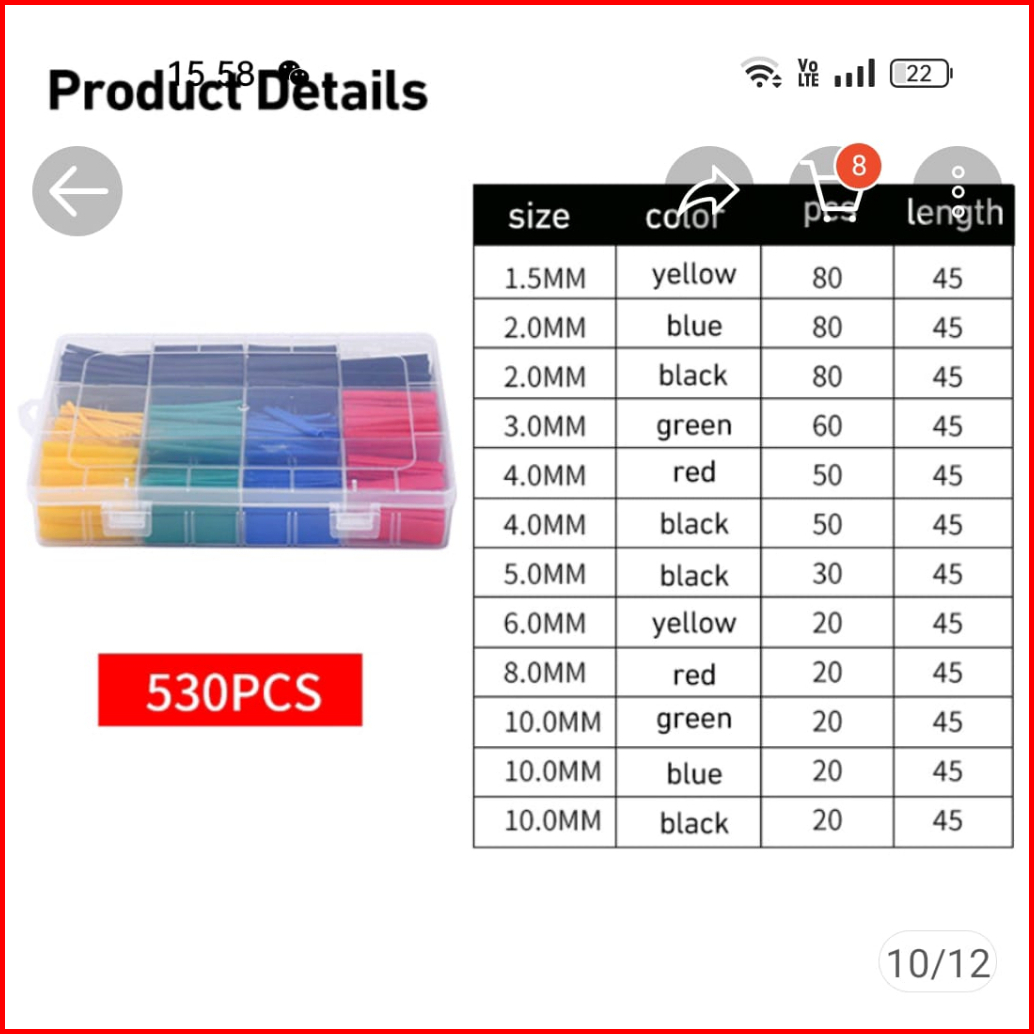 530pcs Set Kabel Bakar Heat Shrink Bahan Polyolefin Warna Warni Heat Shrink Tube Selang Bakar Kabel Isolasl Bakar Heat S