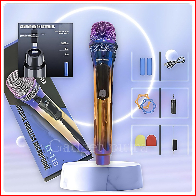 Mic Wireless Lt-118 Rainbow With Receiver 1mic Single Mic Bluetooth Multi Michrophone Wireles Pengisian Tipe Charging