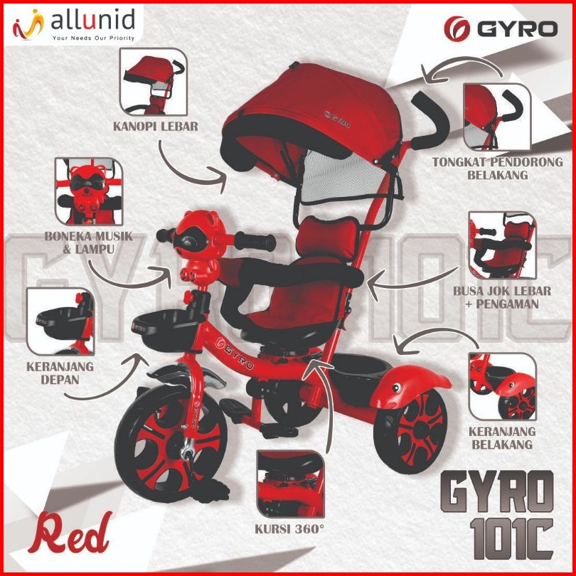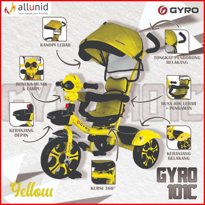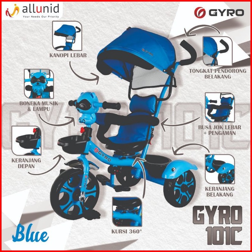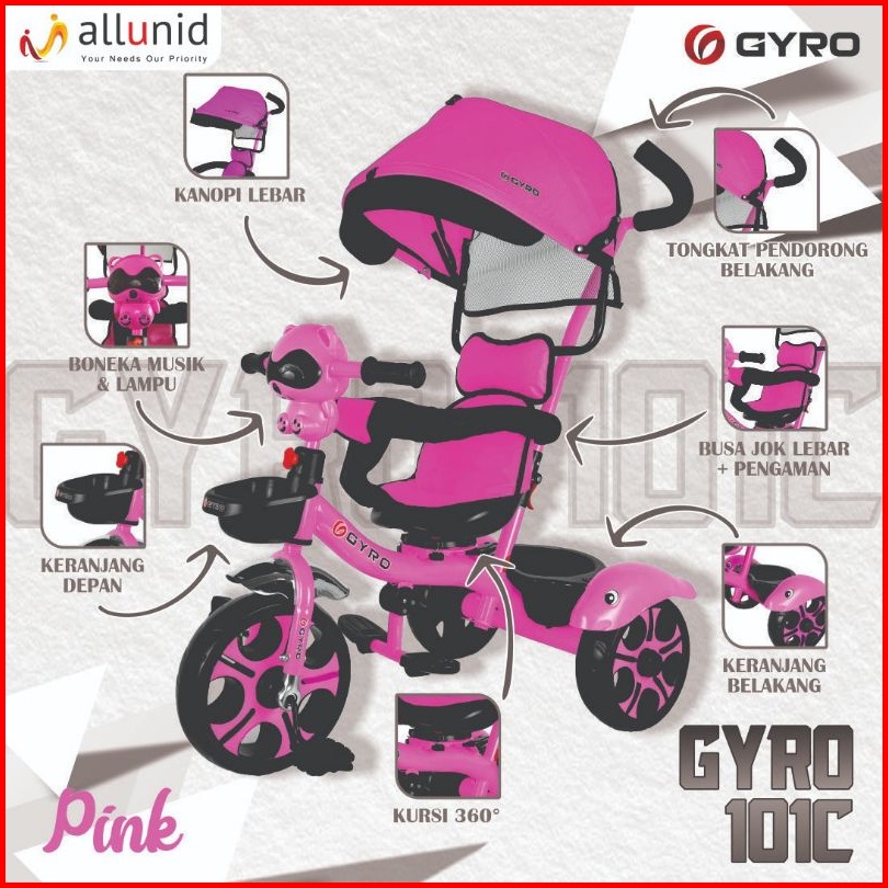 Sepeda Stroller Anak Gyro 101c Gyro 1122c - Sepeda Roda Tiga Anak Tempat Duduk Bisa Diputar - Stroller Anak - Sepeda Ana