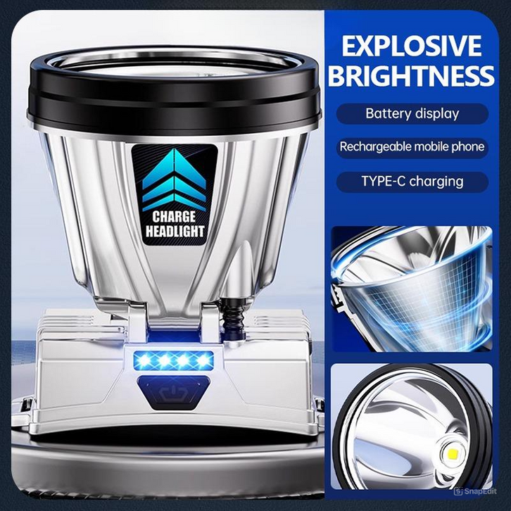 Senter kepala Headlamp outdoor 300 watt super terang cas listrik 1865000mah jarak jauh 900000m 900jam
