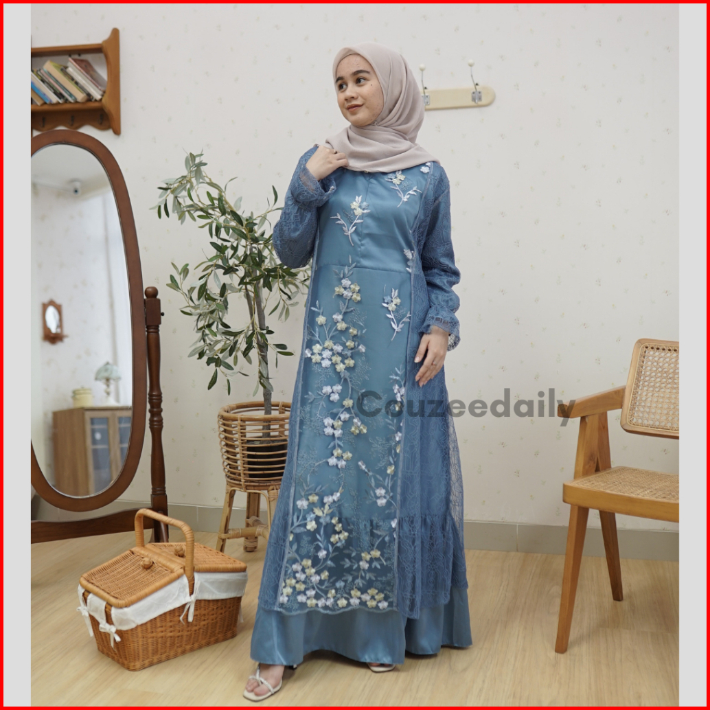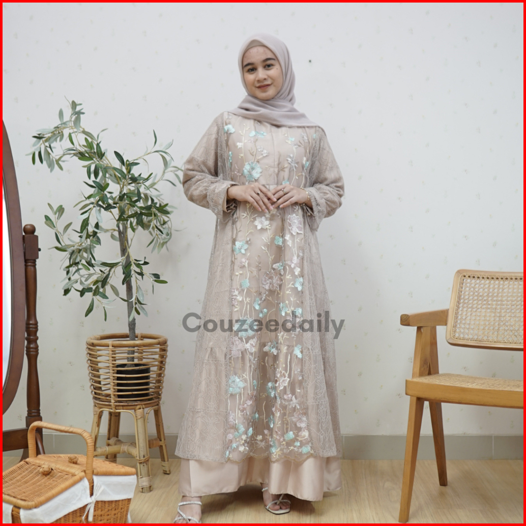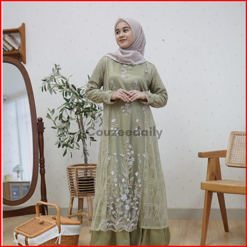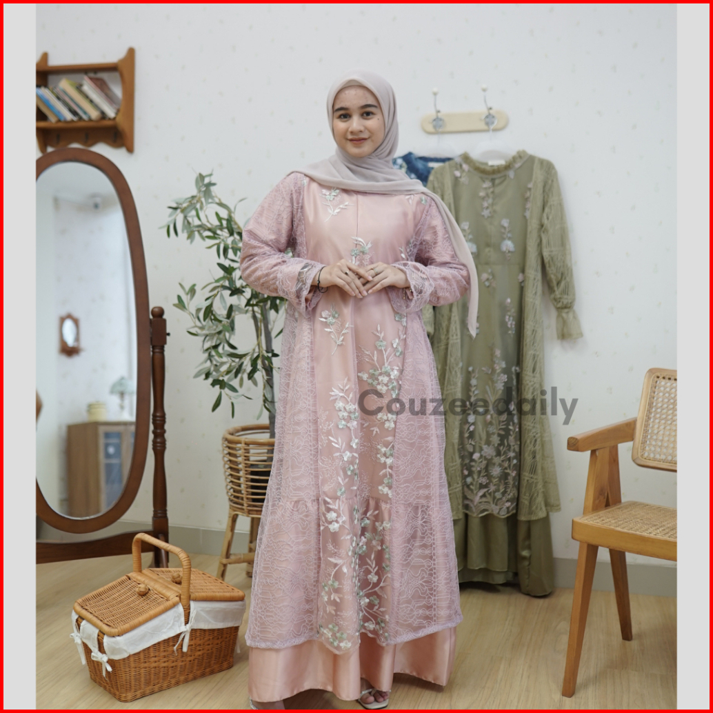 Hana Series Dress Set Busana Kondangan Wanita Size M L Xl Xxl Bahan Satin Mix Brukat Dress Lamaran Bridesmaid Kekinian O
