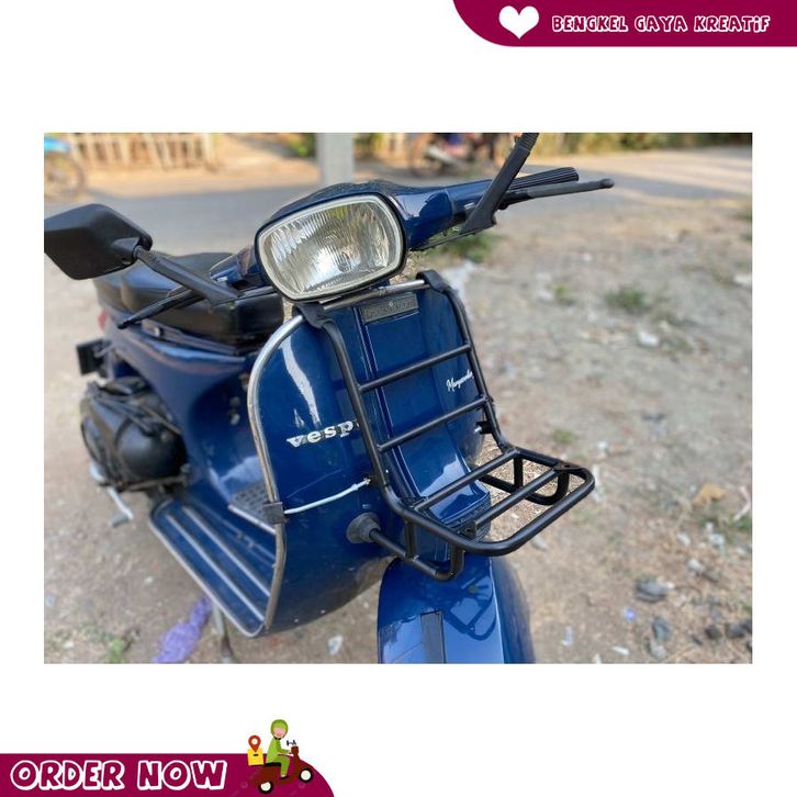 rak depan vespa model PORTADOR minimalis terbaru simpel black hitam cocok untuk semua jenis vespa super sprint vbb px