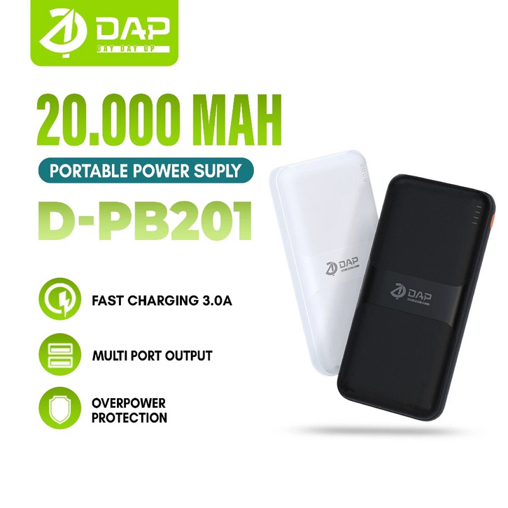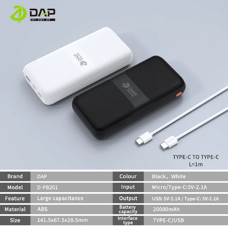 Powerbank DAP 20000mah D-PB201 2.1A Dual Input Port Type C & Micro USB - Garansi Resmi 1 Tahun