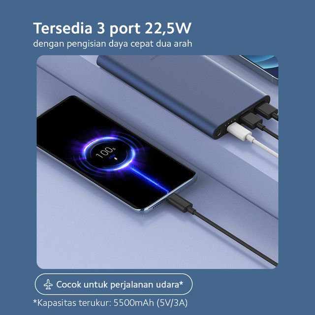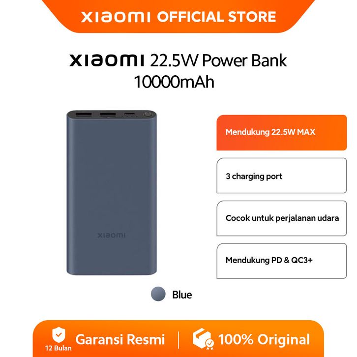 Xiaomi Redmi 22.5W Power Bank 10000mAh | Pengisian Cepat 22.5W MAX | Triple Port USB-A & Port USB-C | Mendukung PD & QC