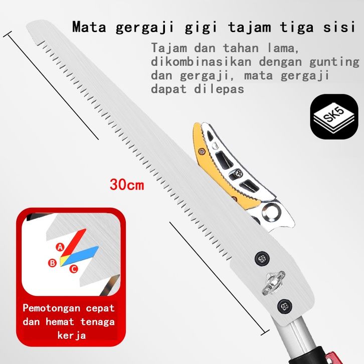 Tree Pruner Galah Tongkat Pemotong Gergaji Gunting Dahan Ranting Tarik untuk Pohon yang Tinggi