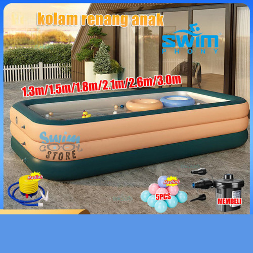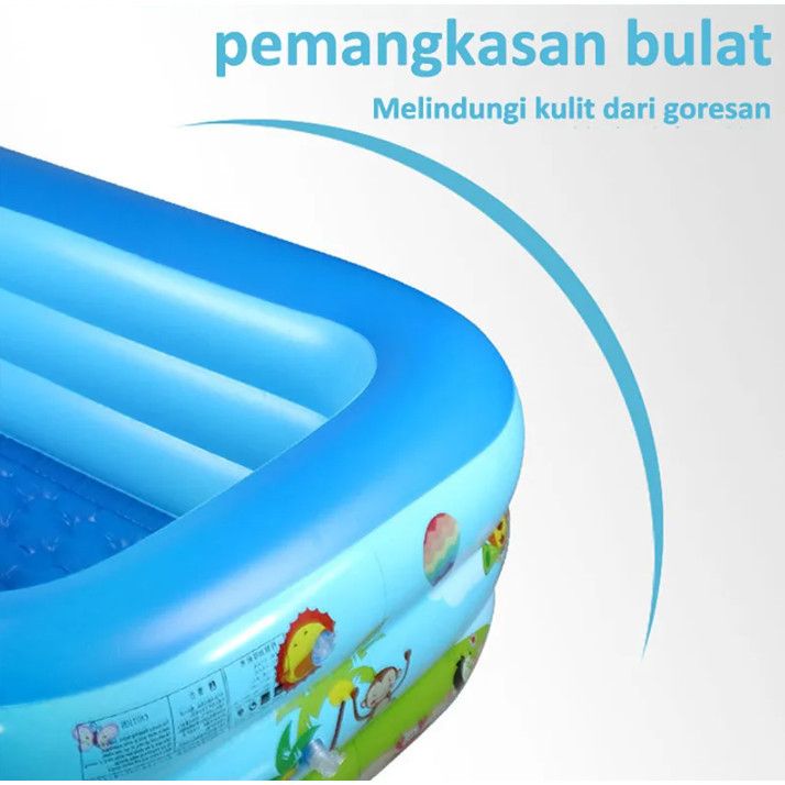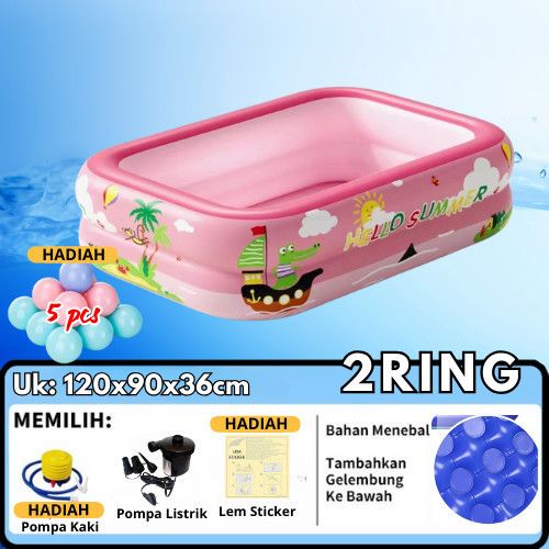 Kolam Renang Anak jumbo 2/3 Rings Dan Bayi Tiup Karet Besar Family Gratis Pompa + Bola 5Pcs