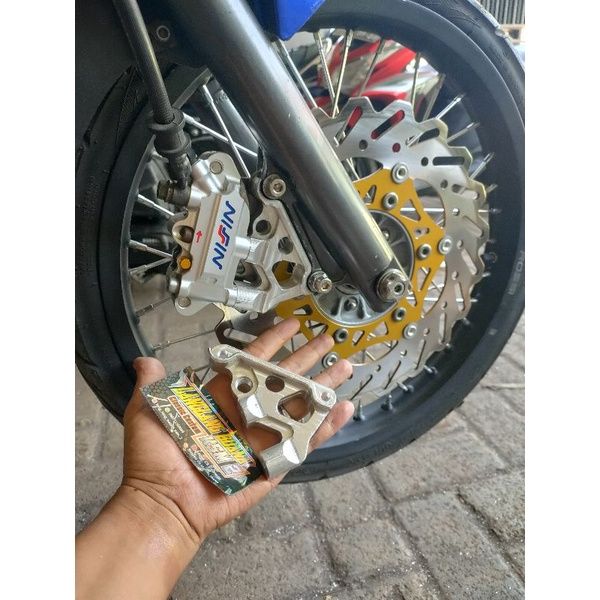 Bracket Kaliper BREKET KALIPER CNC NISIN MONOBLOCK PNP SHOK DEPAN TIGER MP DISCK 300 MILI/320/3401 SET BREKET+RING