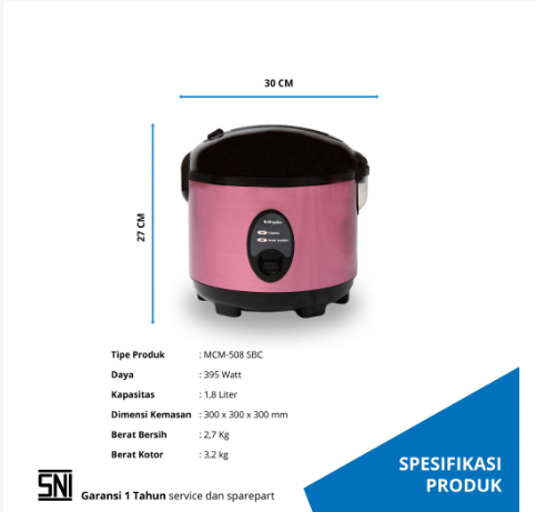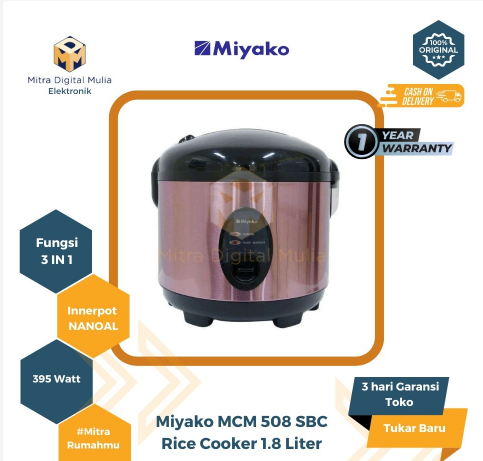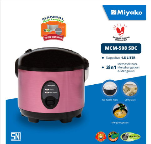 Miyako MCM 508 SBC Rice Cooker 1.8 Liter Penanak Nasi MCM508SBC Magic Com Nanoal Coating Cook and Warm