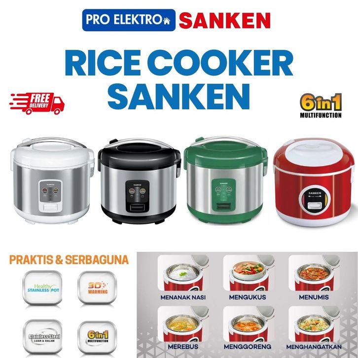 Rice Cooker Sanken Stainless Steel 6 In 1 Magic Com Sj 1999 Hitam 2L Original Penanak Nasi Anti Lengket Garansi Resmi