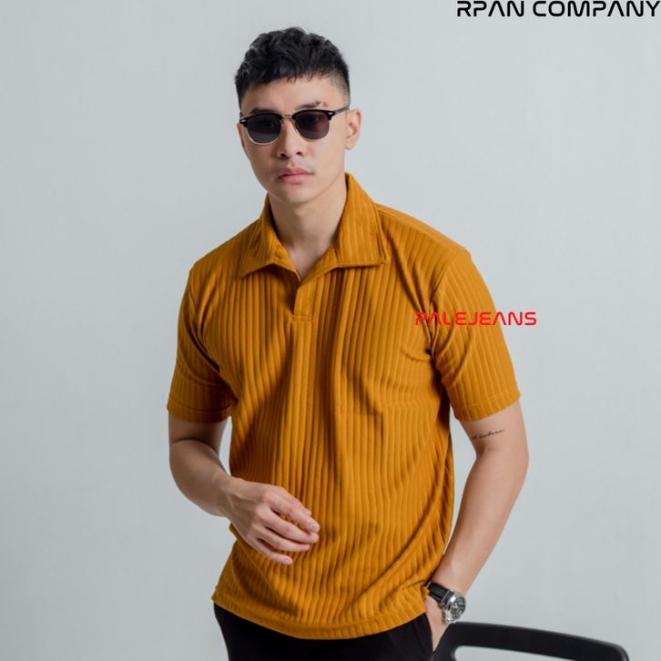 Baju Polo Shirt Knit Cowok Korean Knit Baju Polo Shirt Salur Besar Cutting SlimFit Pria Premium Kaos Kasual Pria Stylish