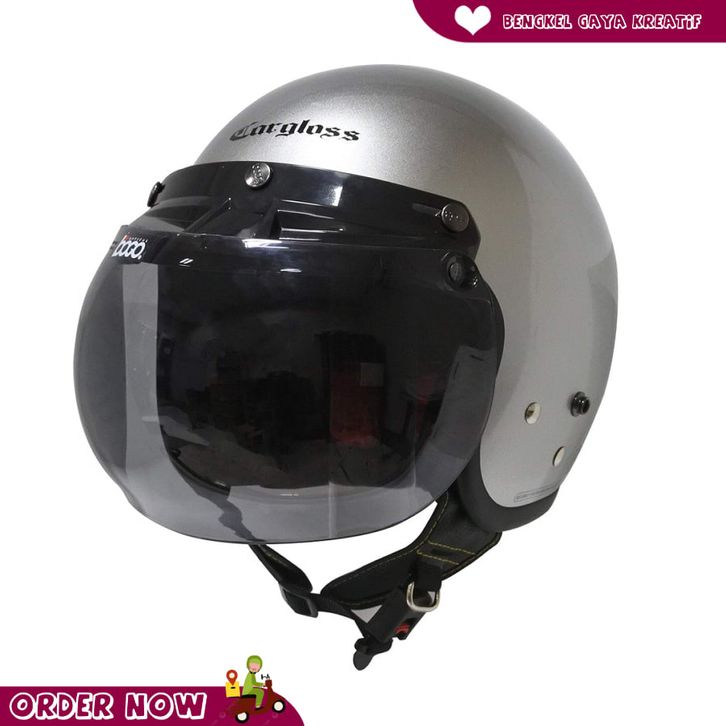 Cargloss CFM Retro Visor Cembung Helm Half Face Slvr Met Gloss