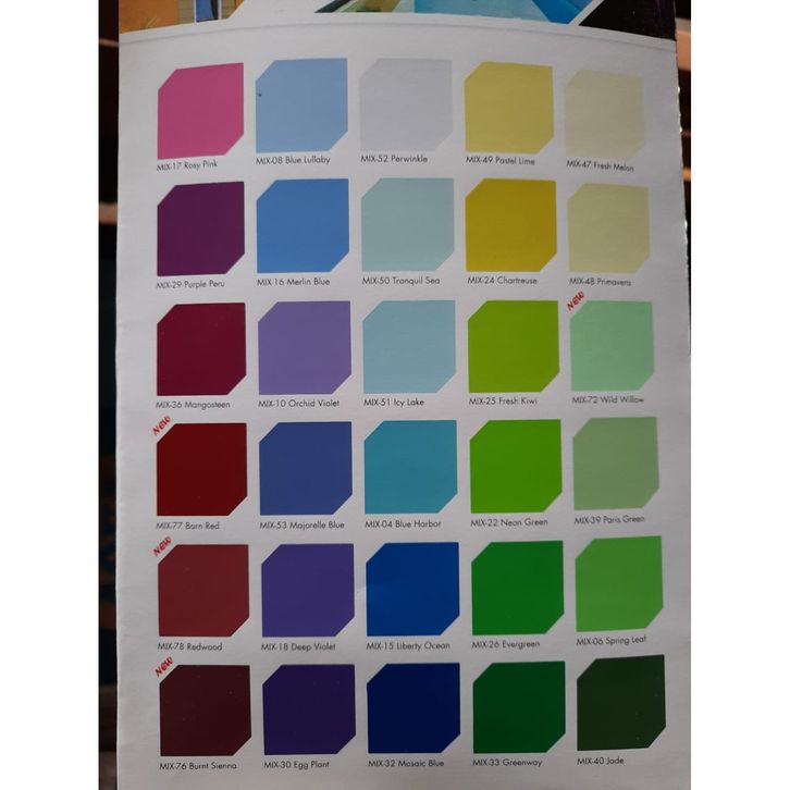 MIX-17 Rosy Pink, MIX-28 Traffic Red, MIX-31 Bright Rosa, MIX-34 Edgy Red, MIX-35 Vivid Maroon, MIX-45 Sea Shell, MIX-46 Misty Rose, MIX-76 Burnt Sienna, MIX-77 Barn Red, MIX-78 Redwood