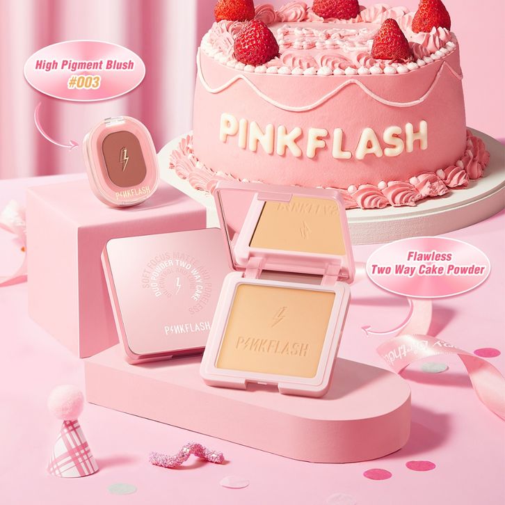 FULL MAKEUP SET FACE MERK OFFICIAL PINKFLASH EYES LIPS BEAUTY SET EYESHADOW EYELINER LIPSTICK TERLARIS