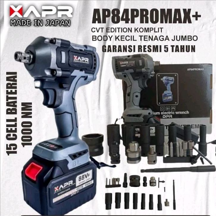 Impact wrench APR JAPAN 1000nM AP84 PROMAX+ GEN-4 1 baterai mesin pembuka baut roda ban motor cvt