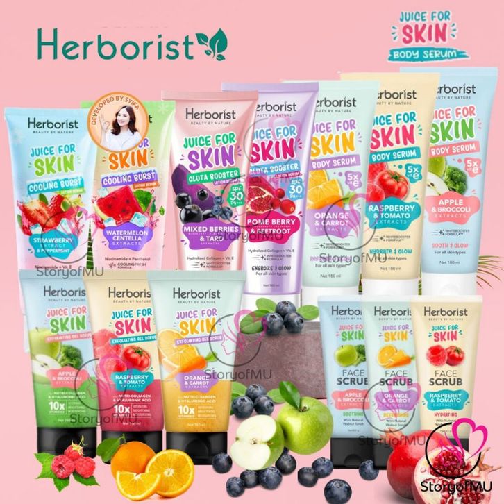 HERBORIST Juice For Skin Body Serum 180ml Exfoliating Gel Scrub 150ml Face Scrub 60g Gluta Booster RATU CANTIKA