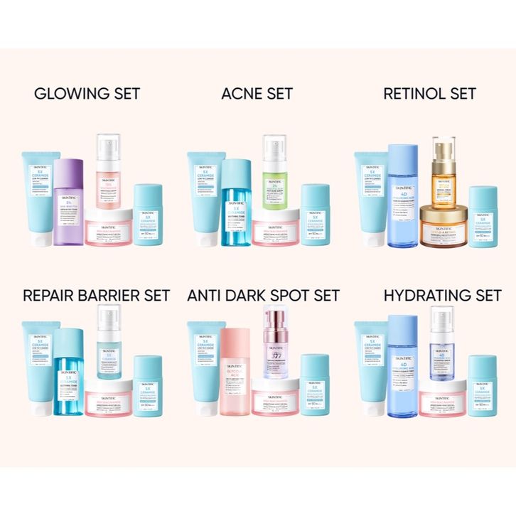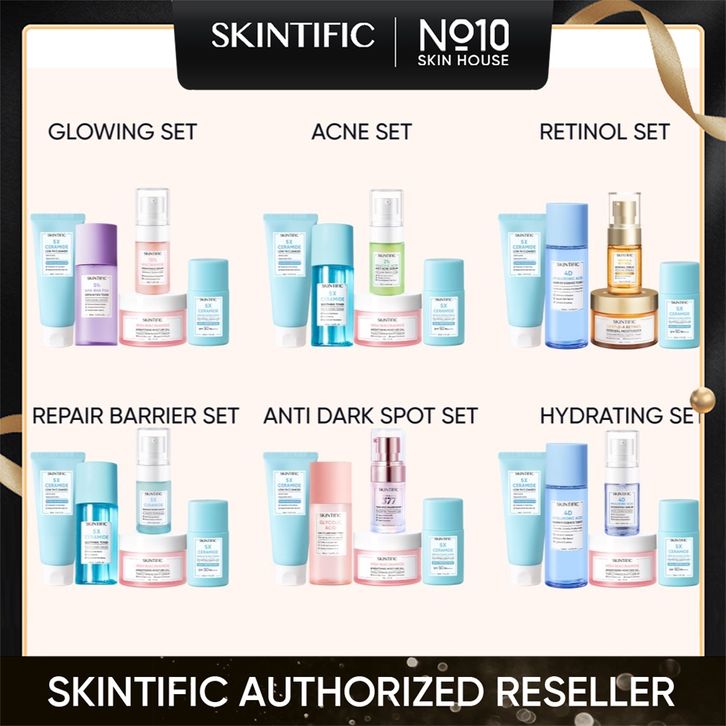 SKINTIFIC 5pcs Paket Skincare Sunscreen tabir surya + MSH Niacinamide Moisturizer Gel pelembab + Low RATU CANTIKA
