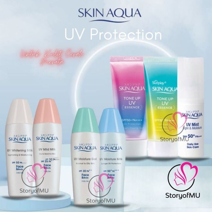 BPOM SKIN AQUA UV Sunscreen Series 40gr Moisture Mild Whitening Milk / Gel / Tone UP UV Essence RATU CANTIKA