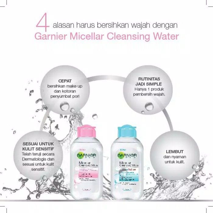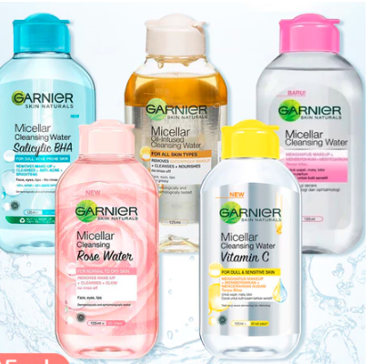 GARNIER Micellar Cleansing Water Pink / Blue / BiPhase Oil Infused/ vit c 50ml / 125ml / 400ml rose RATU CANTIKA