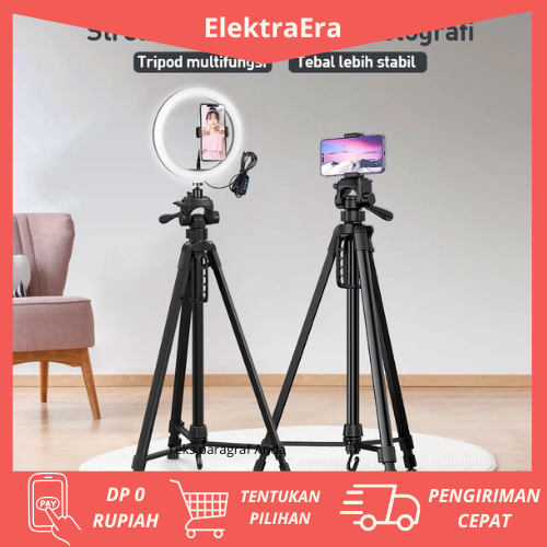 Tripod Handphone Vlog Konten Tripod with Ring Light 26cm 10-Level Brightness 5W Lampu Cincin Dimmable Photography Murah