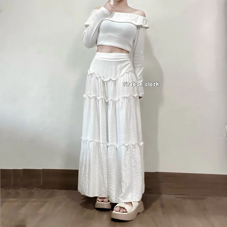 Rok Wanita dewasa Jennie Skirt Bersusun Rok Kiyana Polos Ruffle Resleting
