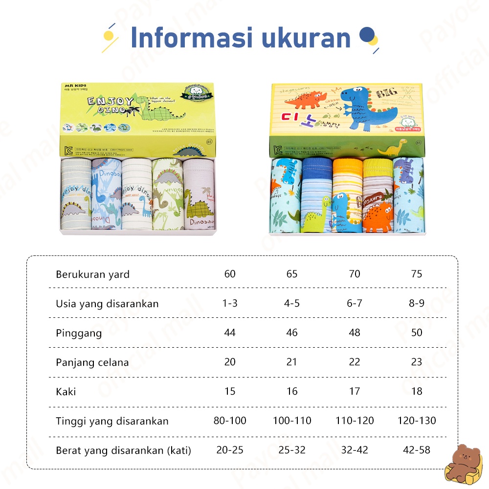 PAYOE Set Celana Dalam Segitiga Anak Laki-Laki 5Pcs Dengan Kotak Lucu