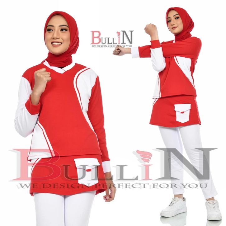 Setelan olahraga Wanita Merah Putih Standar dan Jumbo One Set Olahraga Wanita