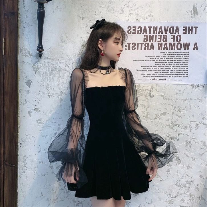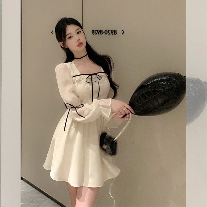 Korean Beige Dress Mini Formal Elegan Casual Dress Vintage Lengan Panjang Pantai Sexy Dress Party Wanita Night Terbaru