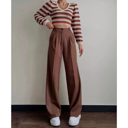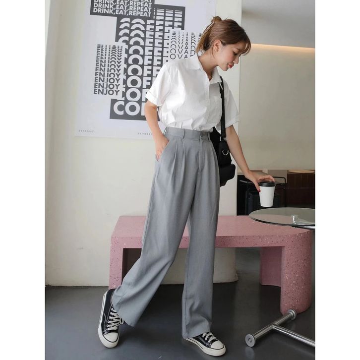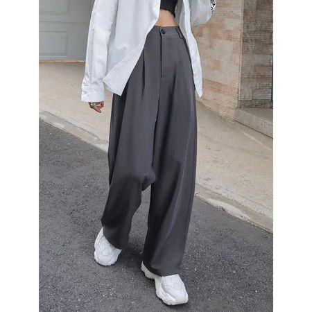 Loose Pants High waist Celana Kerja Wanita Kulot Abu Celana Formal Wanita Big Size Polos
