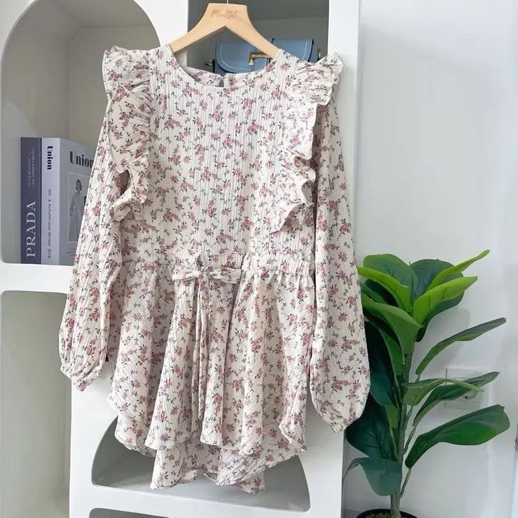 KIYOMI Blouse Motif Floral Lengan Panjang Korean Look Atasan Wanita Aesthetic Terbaru