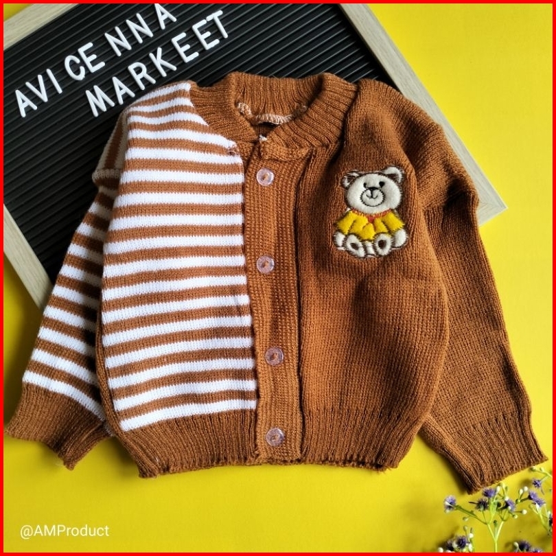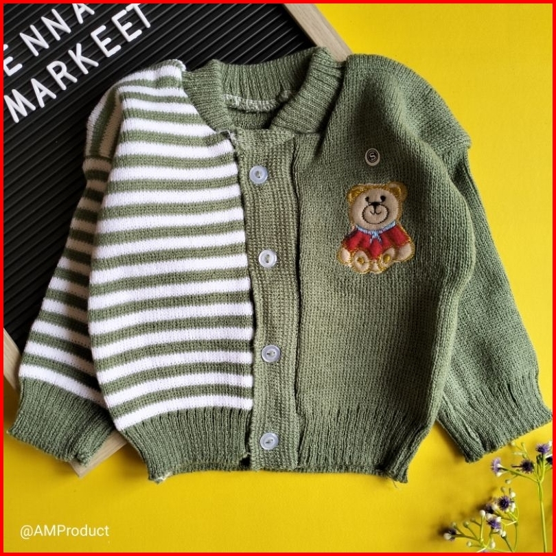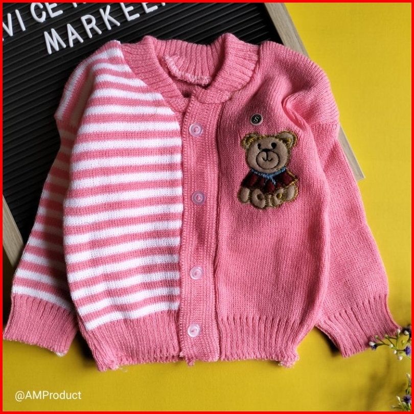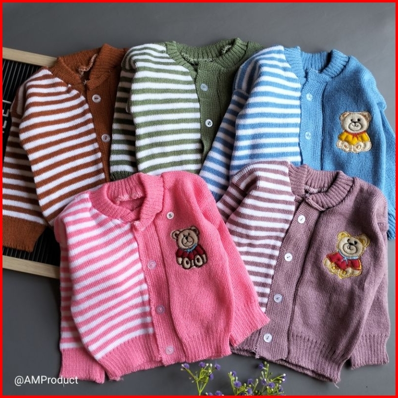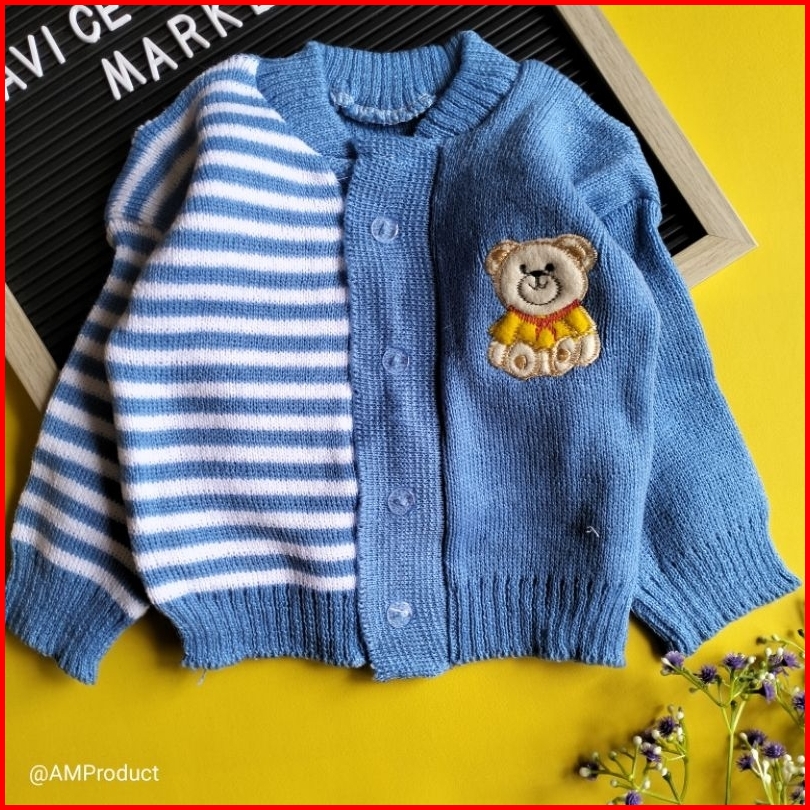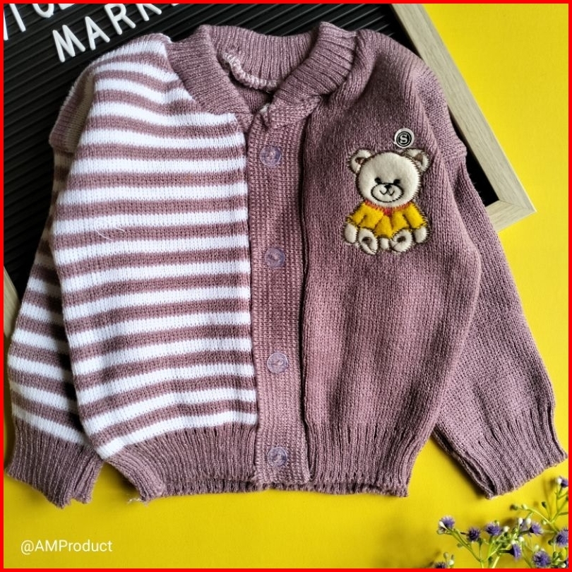 Jacket Mantel Sweater Rajut Bayi 0-12 Bulan Bear Garis