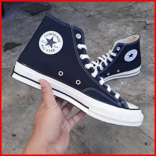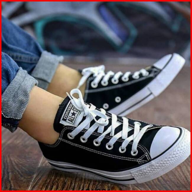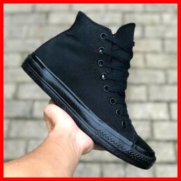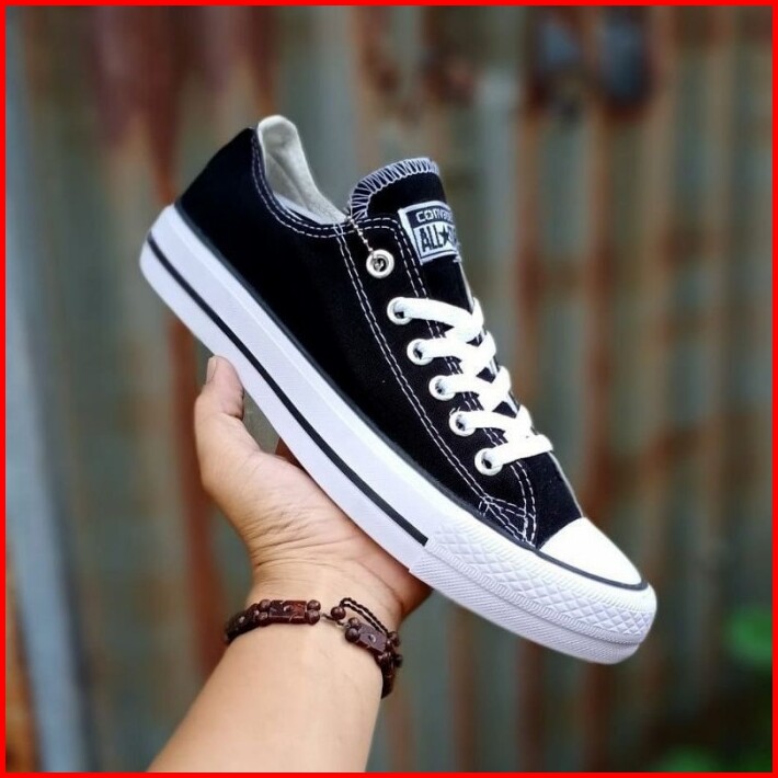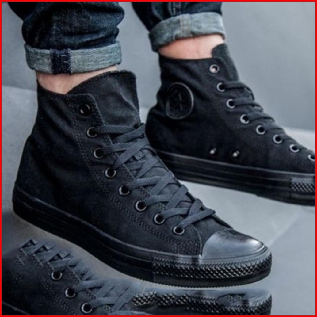 Sepatu Sekolah Anak Perempuan Laki-laki Hitam Putih Polos Converse Hight Low
