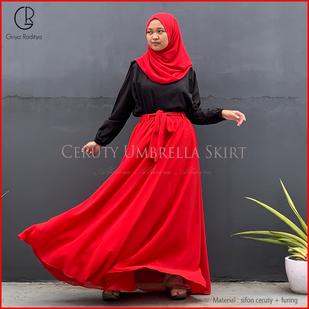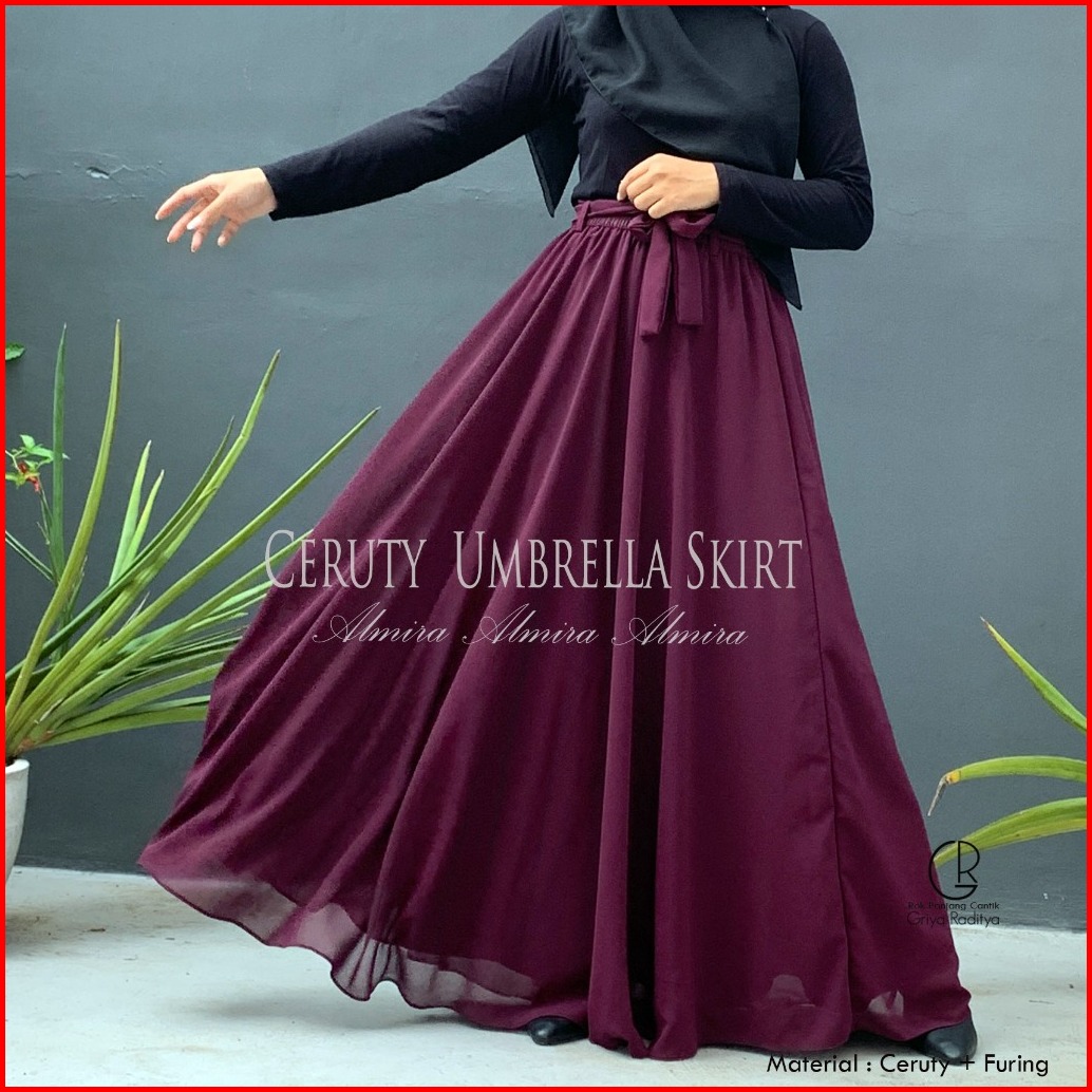 Rok Panjang Wanita Payung Muslimah Sifon Chiffon Ceruti Umbrella Skirt Griyaraditya 23 Warna