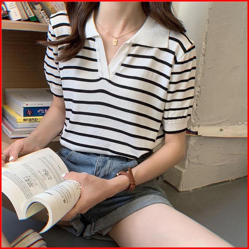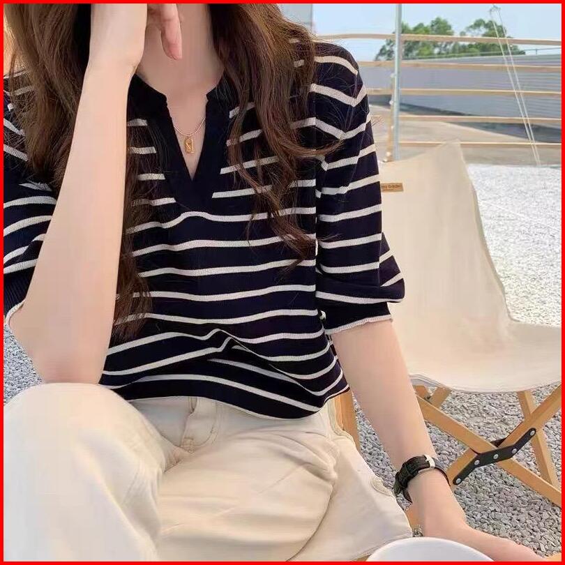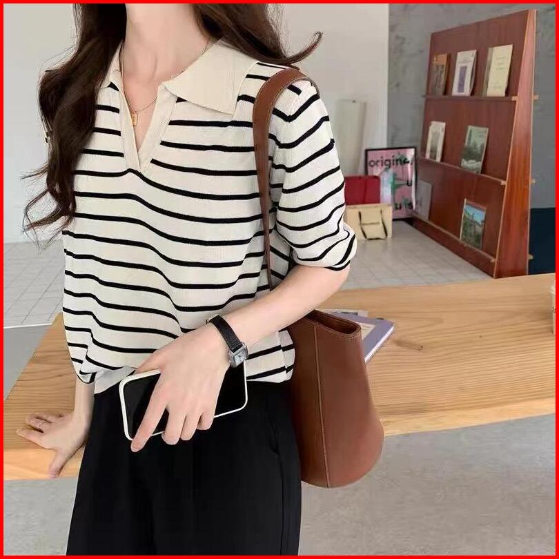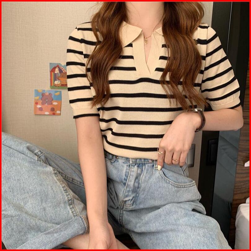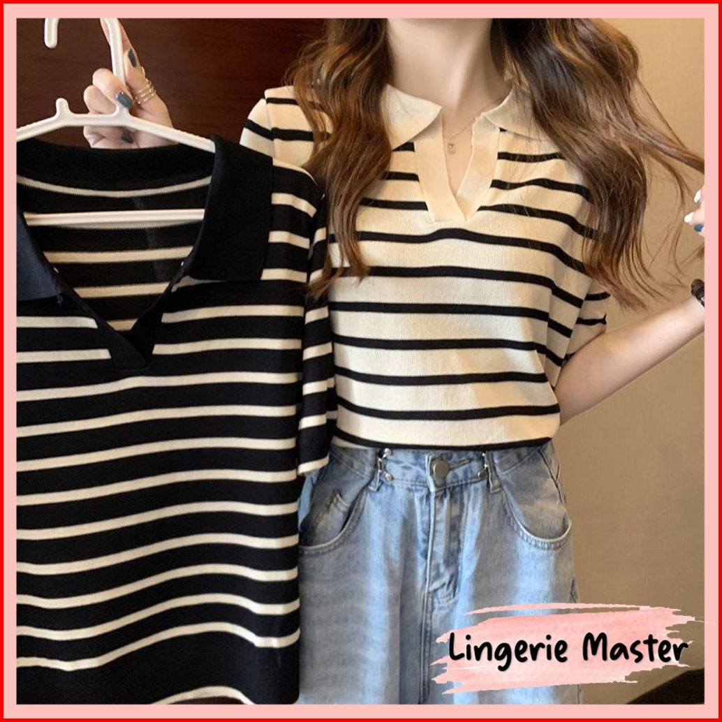 Lingerie Master - T-101 Knitwear Sweater Crop Rajut Sweater Bergaris Baju Rajut Import Crop Top Lengan Pendek