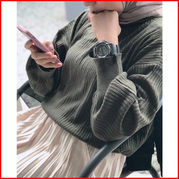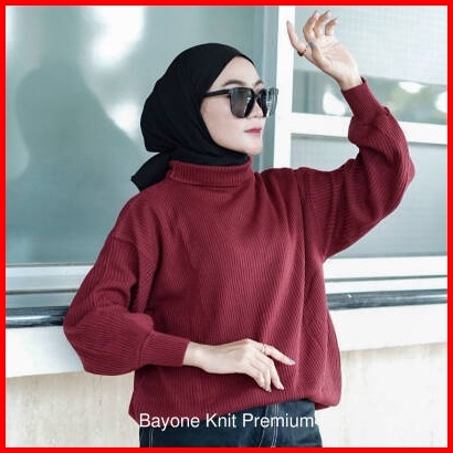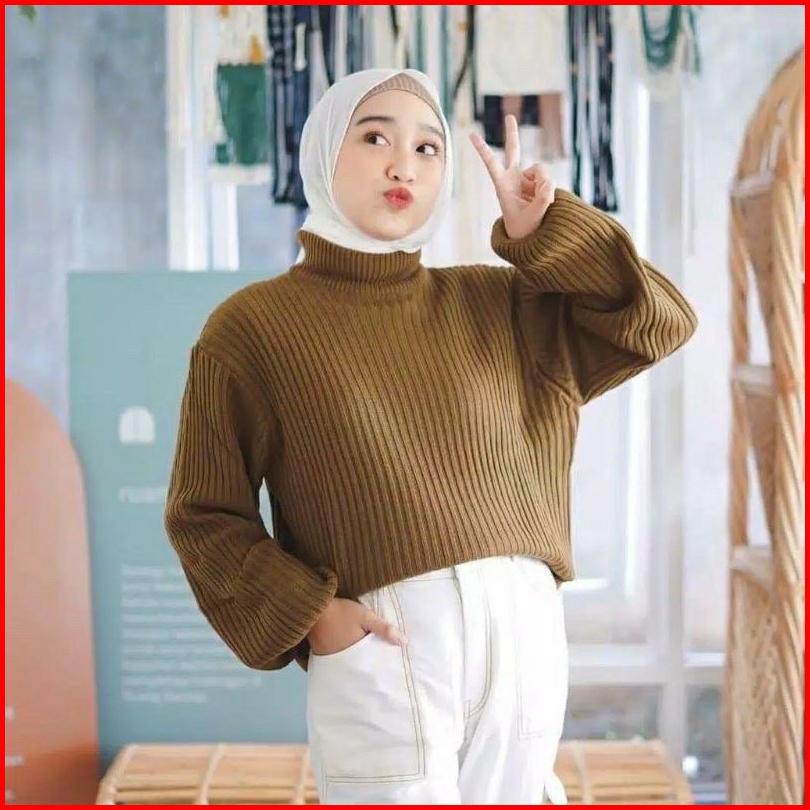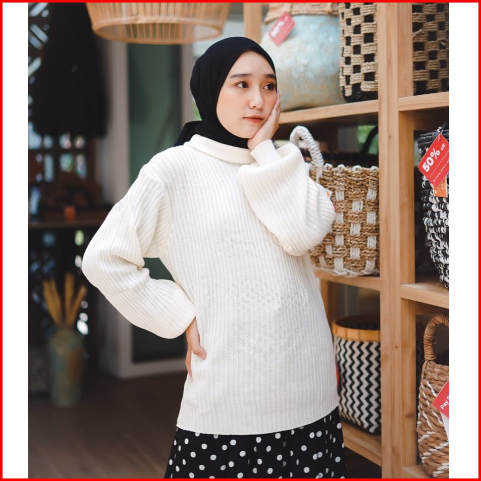 Arumi Bayoneta Sweater Turtleneck Outer Wear Tangan Balon- Atasan Rajut Wanita Oversize Tangan Balon