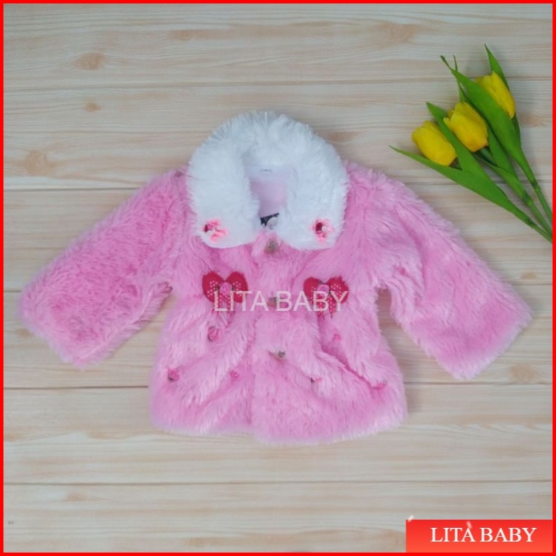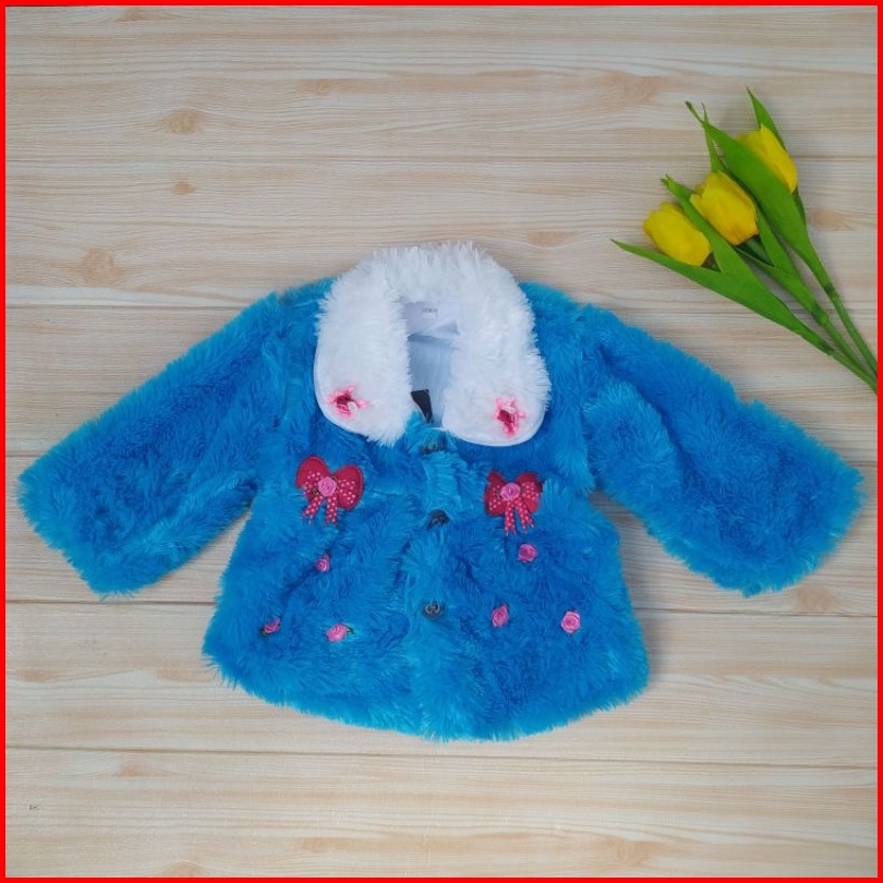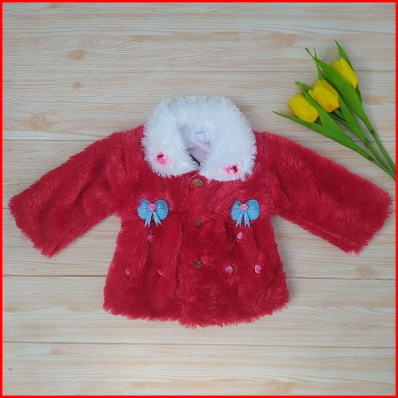 Jaket Bayi Perempuan Bulu Usia 3-6 Bulan Sampai 2 Tahun Bulu Tebal Lembut