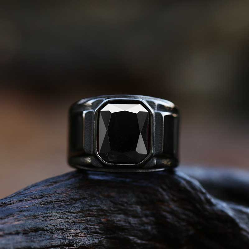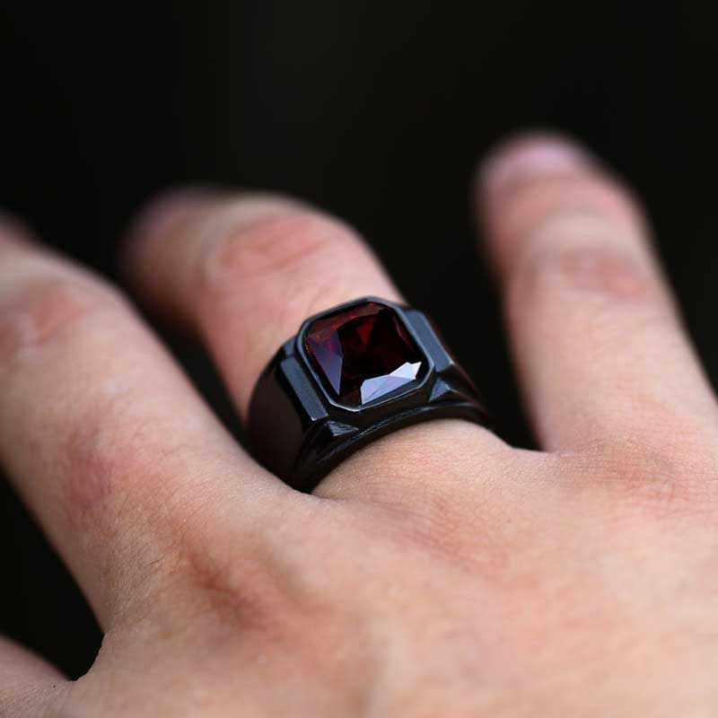 Vintage Ruby Hitam Kristal Baja Titanium Pria Punk Fashion Perhiasan Aksesoris Pernikahan Jari Rings
