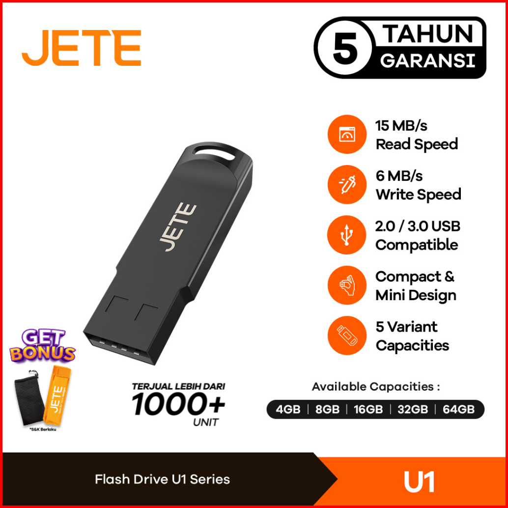 Flashdisk Usb 2.0 Jete U1 Flask Disk 4gb 8gb 16gb 32gb 64gb - Garansi 5th