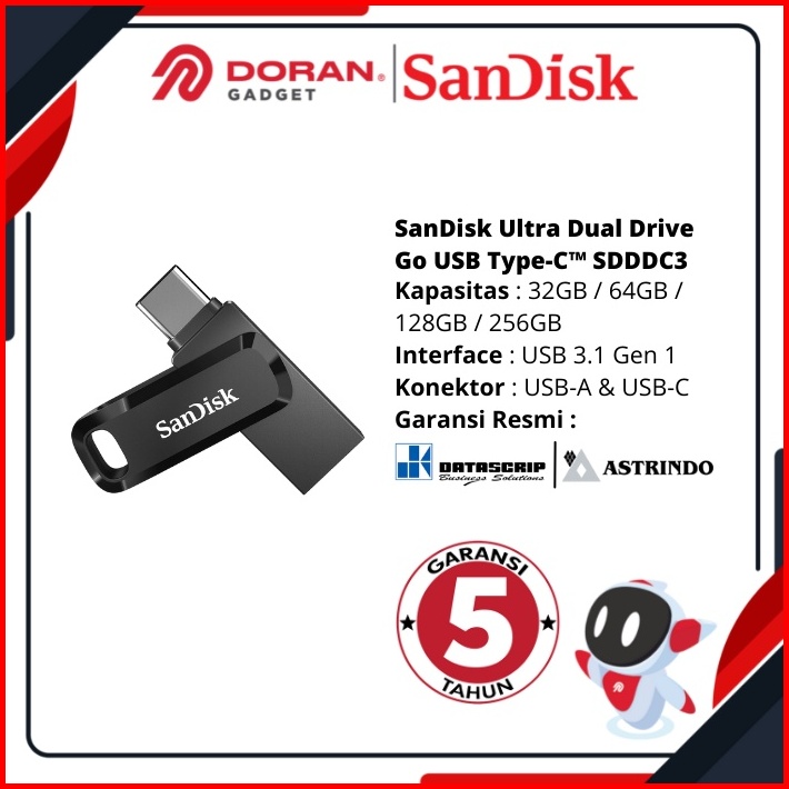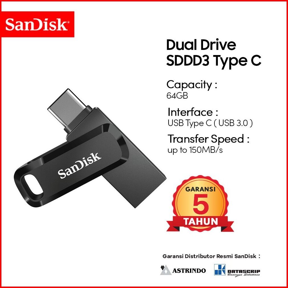 Flashdisk Flash Disk Drive Otg Usb Type C 32 64 128 256 Gb 32gb 64gb 128gb 256gb Sandisk Dual Drive Sdddc3 - Garansi 5 T