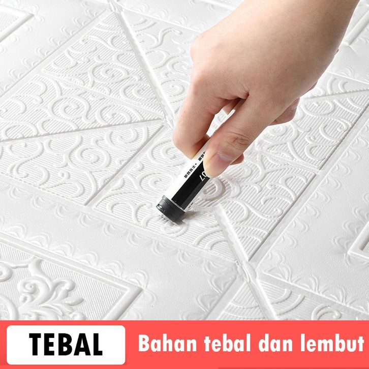 Wallpaper Dinding Paus Biru Foam 3D Motif Batik 70x70cm BLG-1