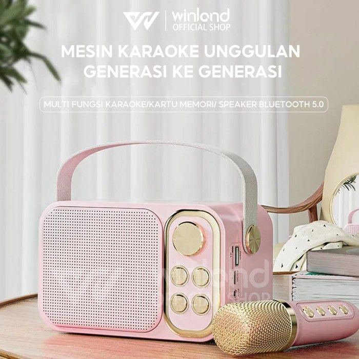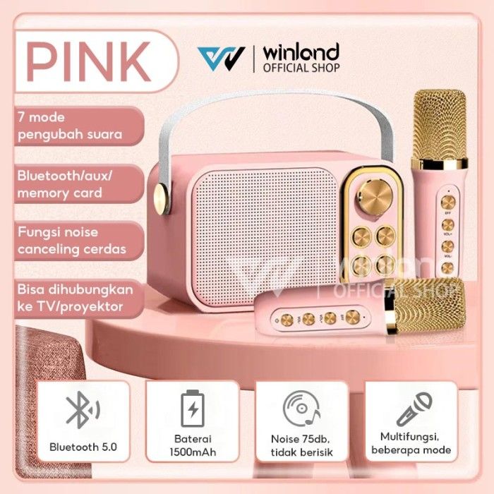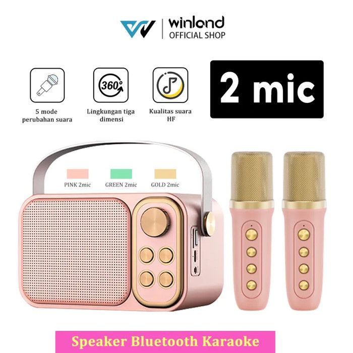 Winland speaker bluetooth 1 set karaoke speaker ktv Cute Wireless - Merah Muda speaker bluetooth karaoke