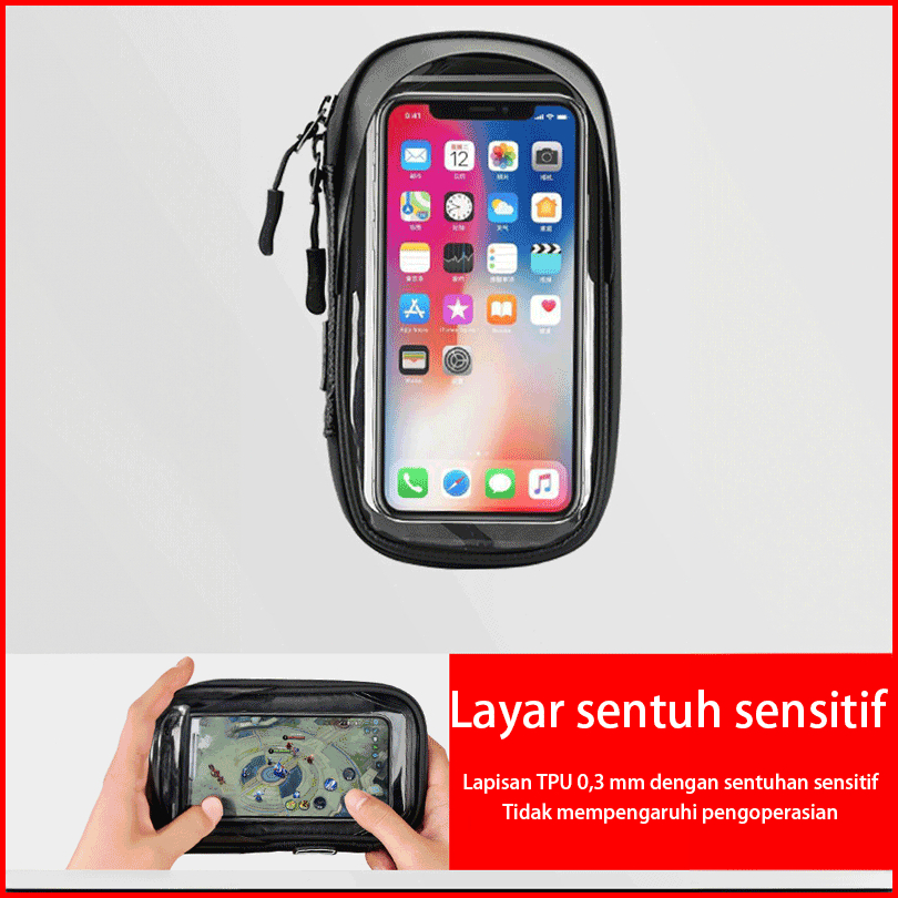 Zacro Holder Hp Motor Dan Sepeda Anti Air Toucscreen Bahan Kulit Sintetis Anti Air Ada Lubang Cas