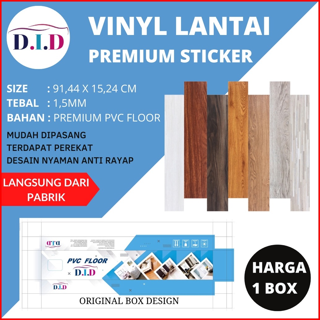 Crown Star - 1 Box 36 Pc Vinyl Lantai Stiker Pvc 91 44 X 15.24 Cm Tebal 1 5 Mm Stiker Lantai Kayu