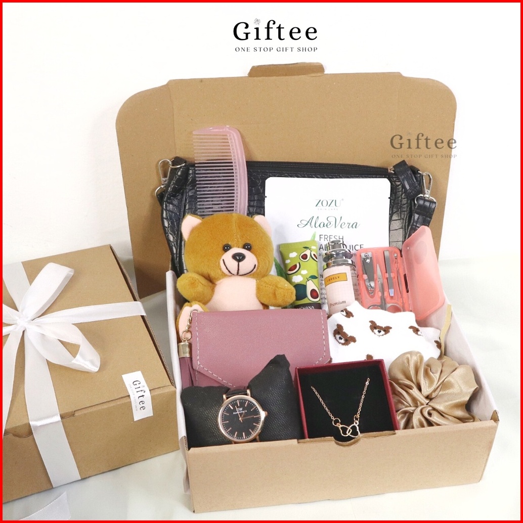 Hampers Wanita Isabela Kado Ulang Tahun Cewek Hadiah Wisuda Tas Sling Jam Dompet Boneka
