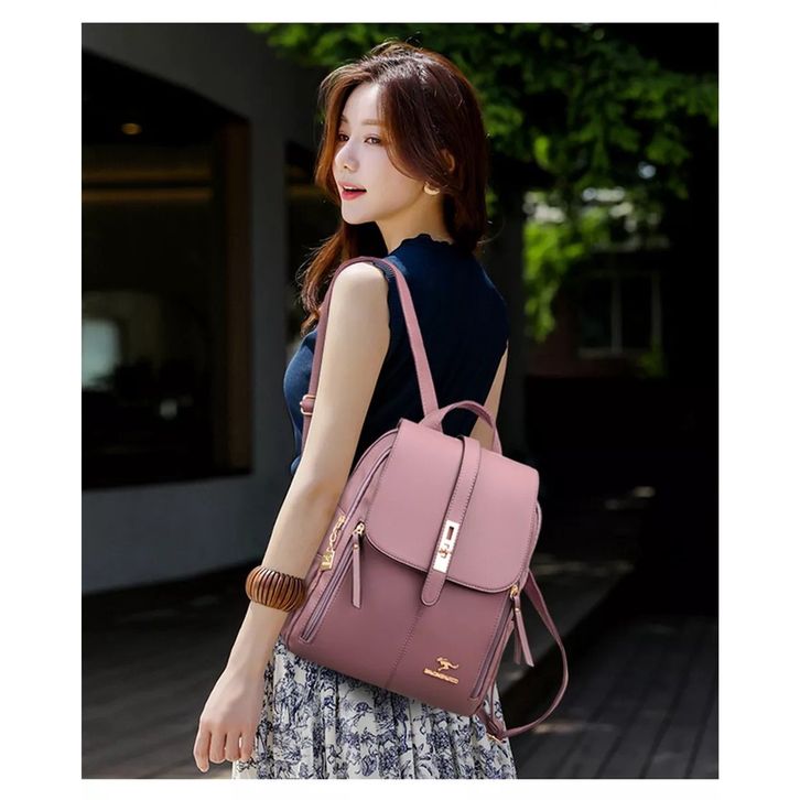 Tas Ransel Wanita Kulit Pu Leather Backpack Tas Punggung Wanita Tas Kuliah Wanita Bahan Sintetis Kuat Tetap Stylish