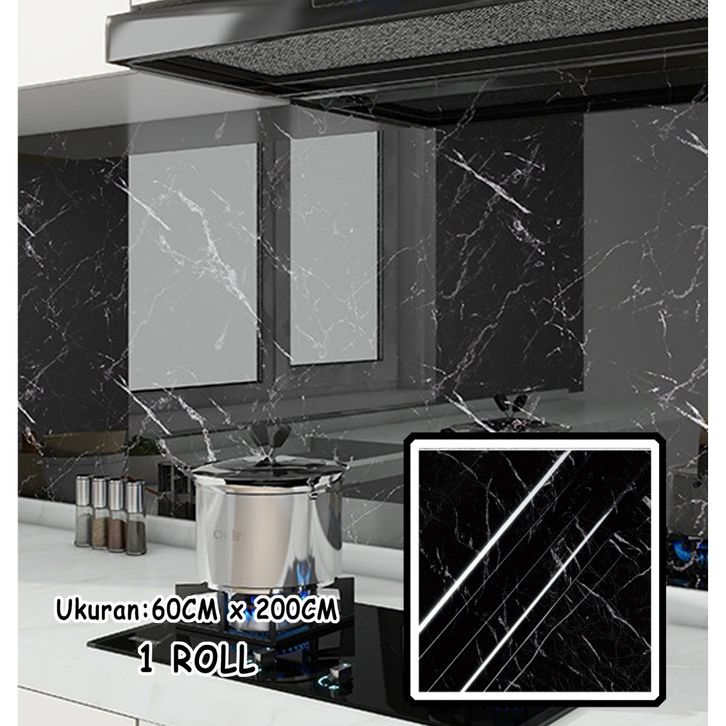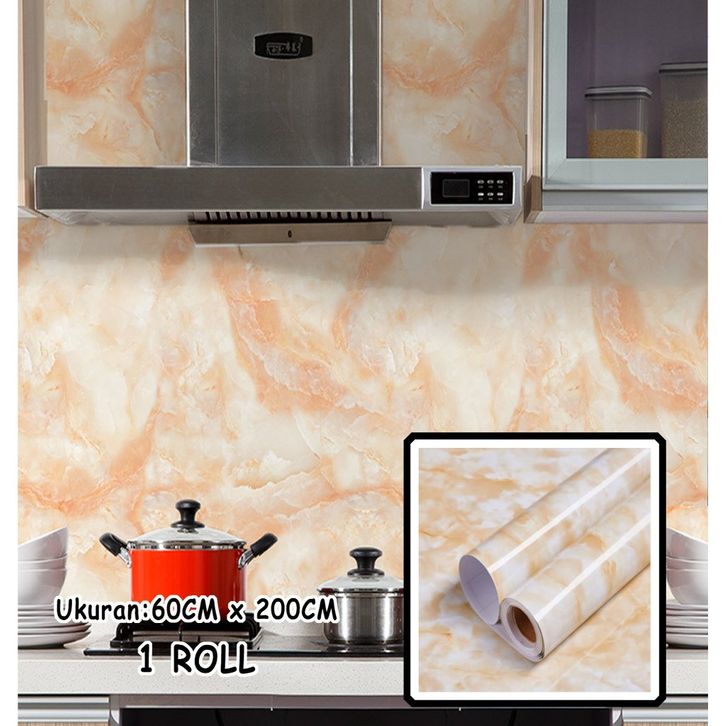 Wallpaper Dinding Roll Stiker Marmer 60x200cm Meja Dapur Stiker Glossy Tahan minyak Tahan Panas