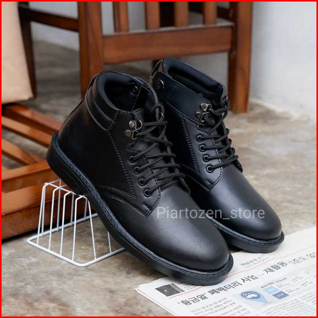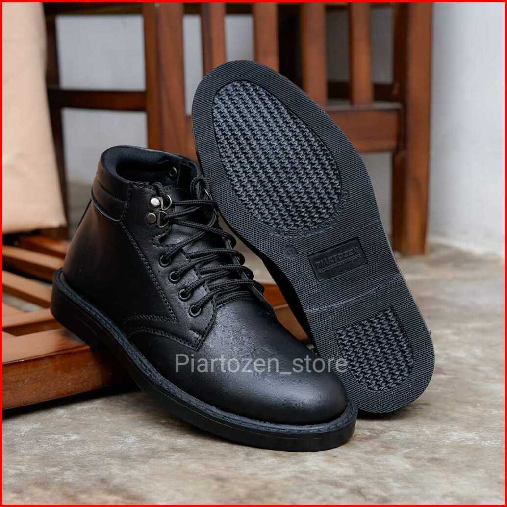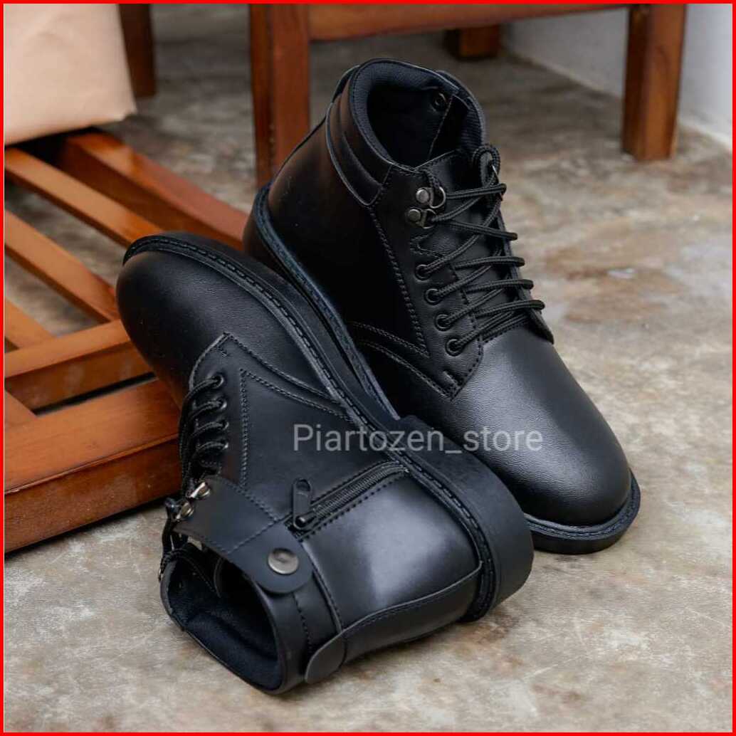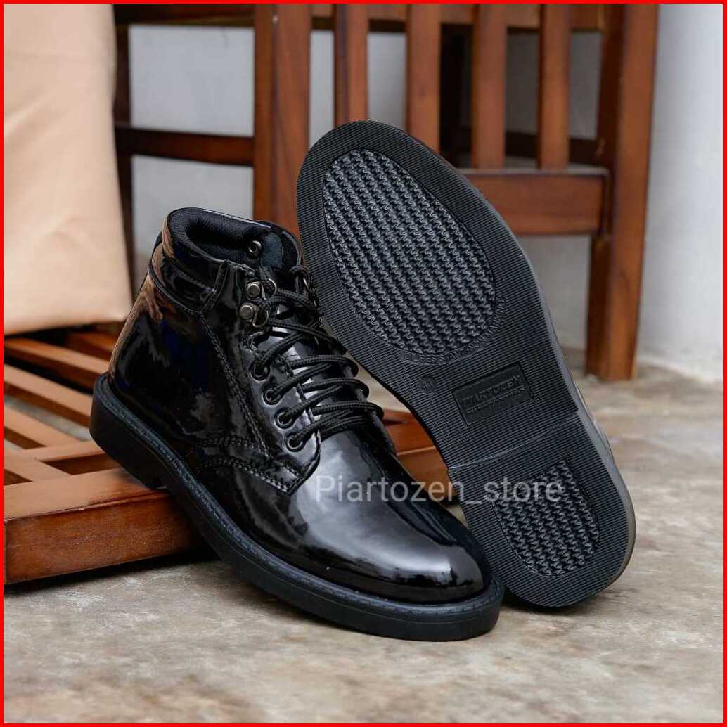 Sepatu Pdh Pria Satpam Security Dinas Tali Resleting Kulit Sintetis Hitam Doff Kilap