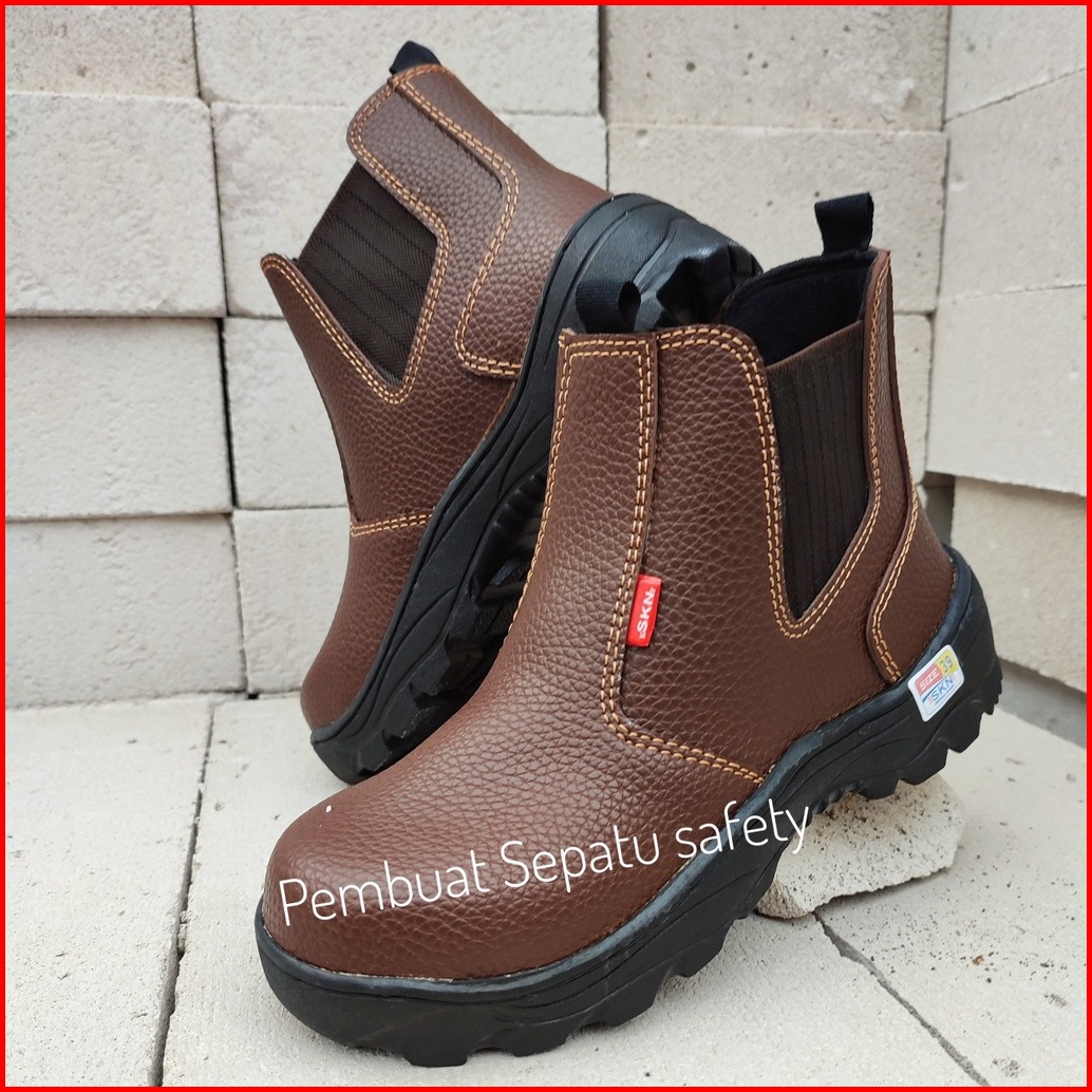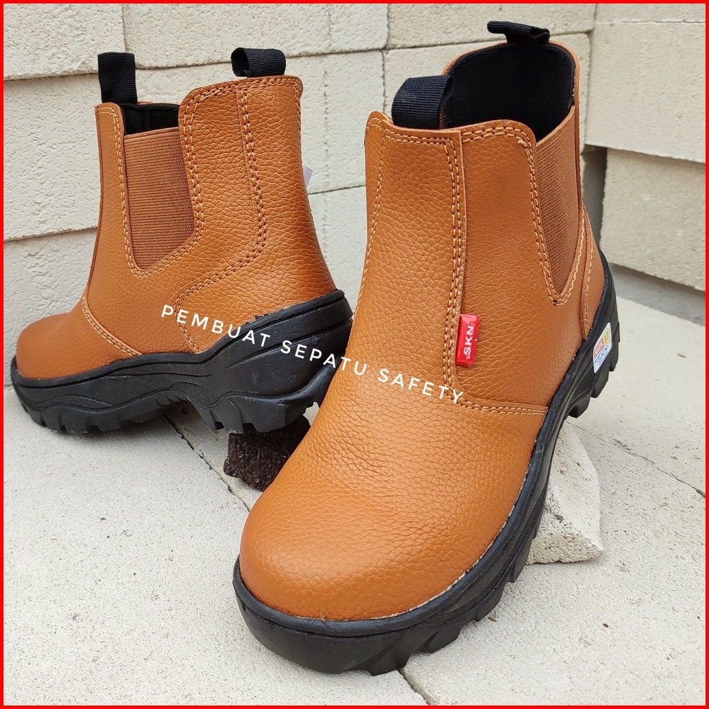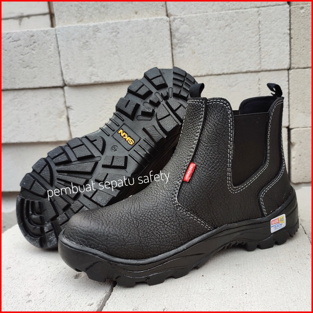 Sepatu Safety Elastis Slip On Boot King Skn Kulit Terbaik Ujung Besi Terlaris Termurah Keselamatan Kerja Pabrik Pom Beng