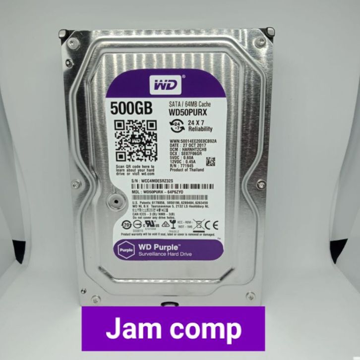 HARDISK 500GB WD PURPLE SATA 3,5" -HDD CCTV DVR Barang New 0 Days